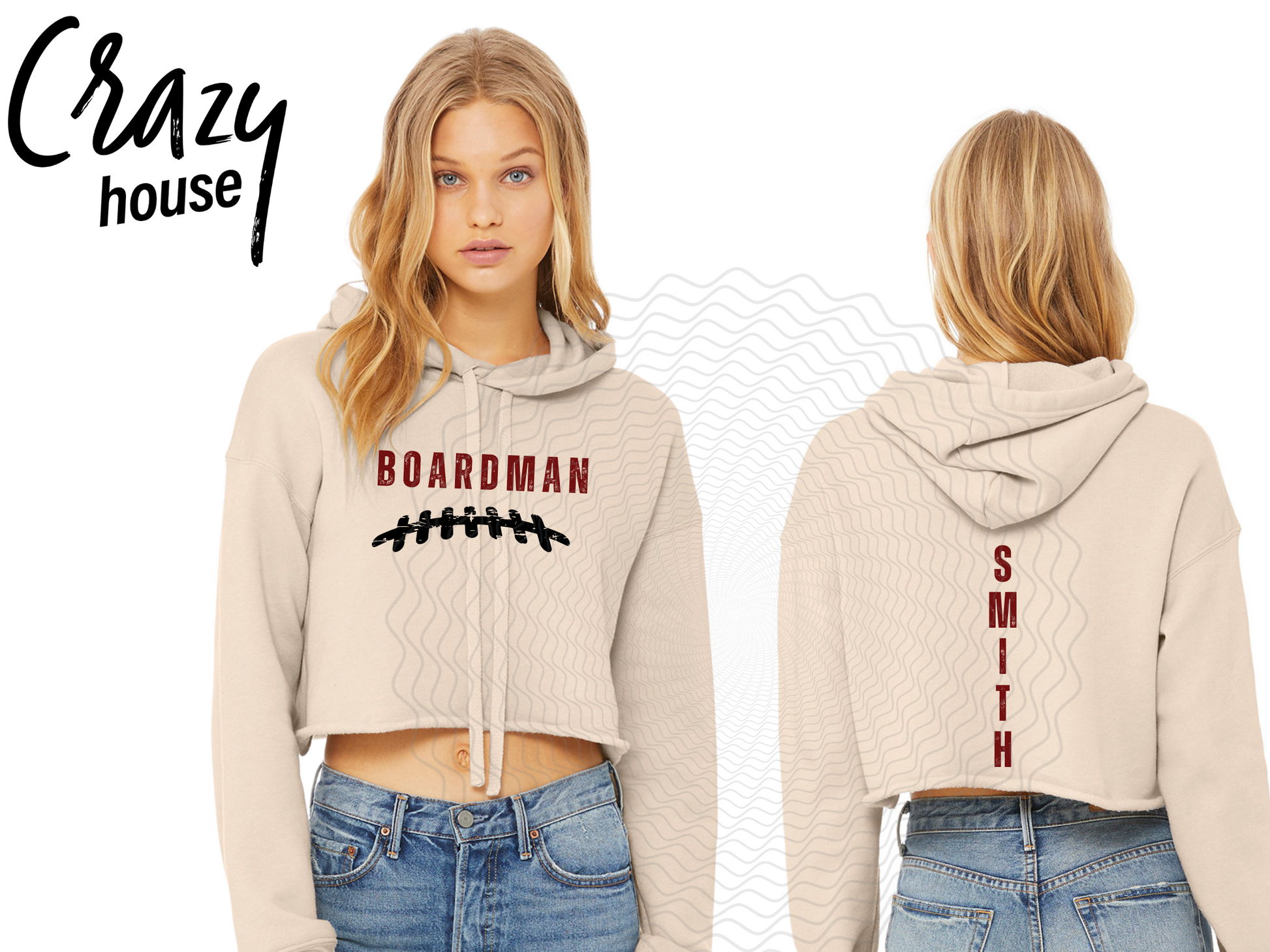 This design comes on Tan (color) Bella+Canvas Crop Hoodie. It will quickly become your favorite shirt!