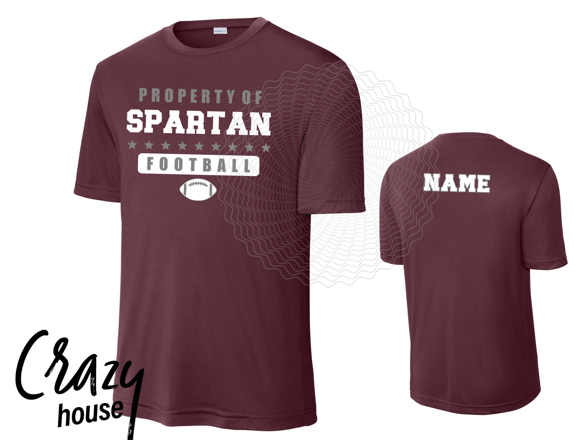 This design comes on Maroon (color) DriFit style Tee. It will quickly become your favorite shirt!