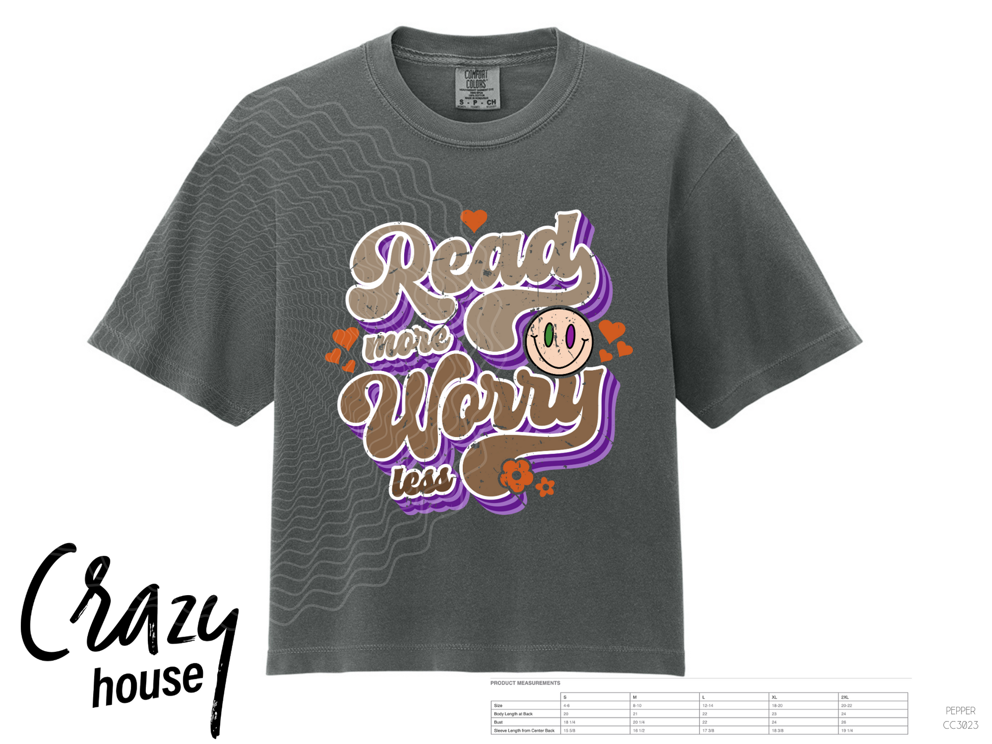 This design comes on an Pepper (color) Comfort Colors Crop Tee. It will quickly become your favorite shirt!